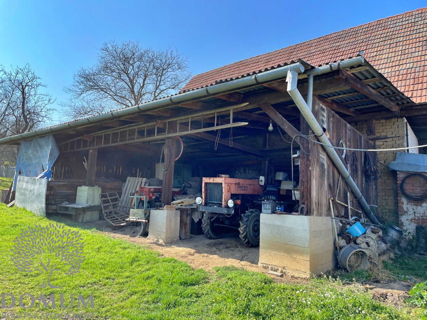 Ďalej sa na pozemku nachádza čiastočne podpivničená dielňa s montážnou rampou, murovaná garáž a maštaľ, kôlňa na drevo, dve priestranné technické stavby – odkladacie priestory a dobová stodola, ktorá predeľuje nádvorie od pekného veľkého udržiavaného ovocného sadu s kvalitnými starými odrodami rodiacich stromov.